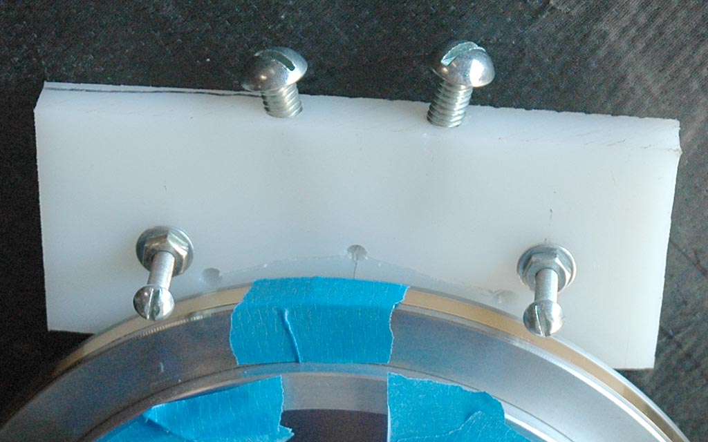 These arcs of steel strap define the CW and CCW rotation limits and the homing location.