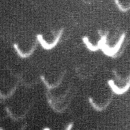 Here are the same small sections in the straight-stacked and aligned before stacking. The curved path in the aligned image is a single hot pixel.