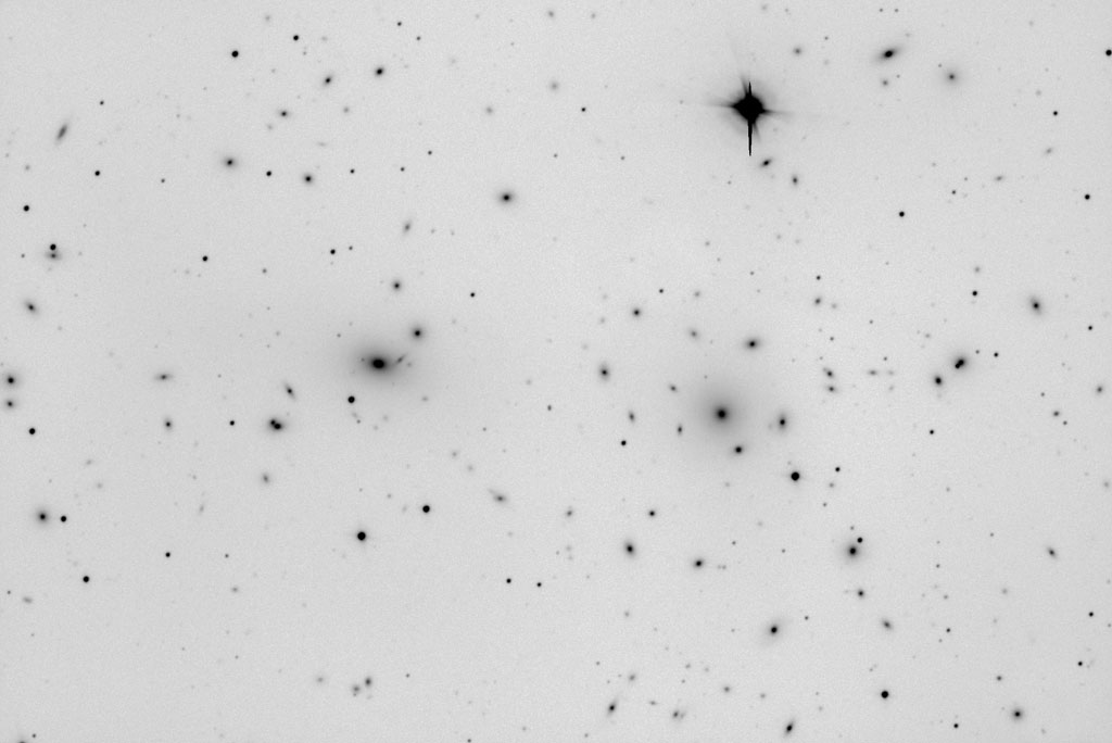 Below is Abell 1656 (the Coma Cluster of galaxies), captured in 17 2x2-binned images of 300 seconds exposure each. The seeing wasn't very good, but there are hordes of faint galaxies, more galaxies, in fact, than there are stars in this image.