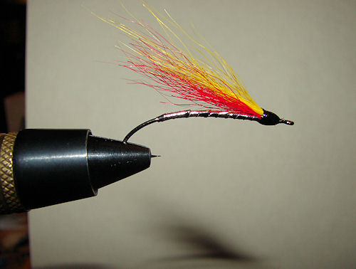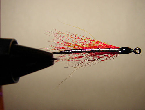 The following is a step-by-step photgraphic sequence of the tying of the Mickey Finn Streamer fly. |