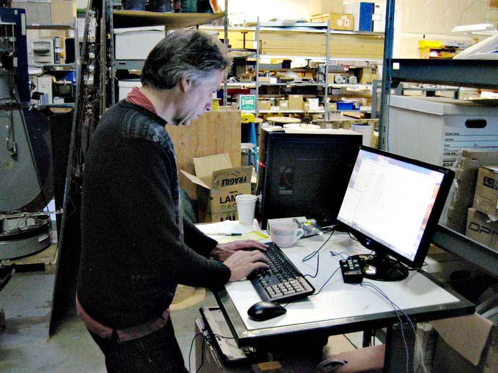 Once we had it set up, it was not necessary to go outside again. Here is Dan at the keyboard soon after we tracked a satellite. Aside from a few sanity checks, we ran the telescope (modeling the mount pointing, focusing, locating objects, and making images) entirely from the computer indoors.